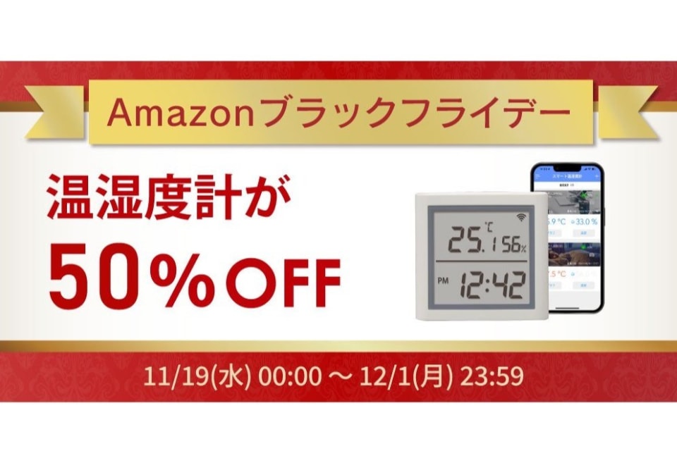 ラトックシステムは、Amazon.co.jpで開催中の「Amazonブラックフライデー」で、「スマート温湿度計」などが最大50%オフのセールを実施している。期間は12月1日まで。