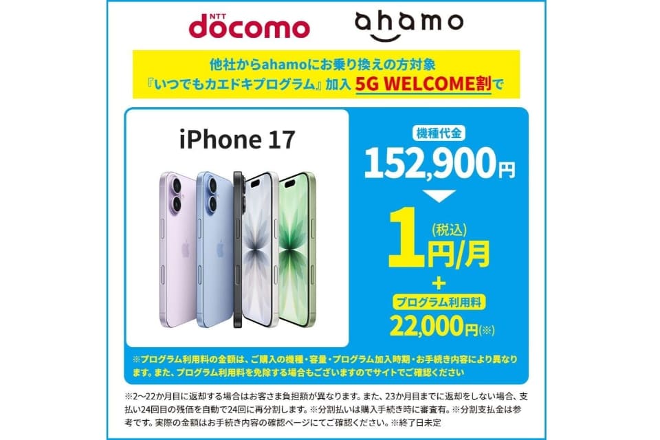 Amazon.co.jpで、ドコモ/ahamoの回線とiPhone 17/Google Pixel 10がセットになった申し込み用URLの取り扱いが始まった。端末代金はドコモ/ahamoの公式オンラインストアと同額になる。