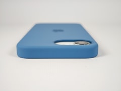 続いて、純正ケース「iPhone 16e シリコーンケース」。カラーはウインターブルー。