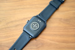 ホーム画面に戻したり、ワークアウトの計測を一時停止したりでき、回して画面をスクロールすることもできる。マイク、スピーカーも搭載し、裏面に心拍センサーなどを備えている。