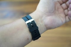 ベルトはシリコン製で、ステンレス製のバックルで留める。ややチープな質感だが、装着感は悪くない。ベルトを含む重さが約40gで、非常に軽く感じられた。