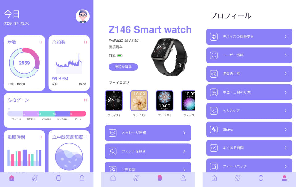 ヘルスケア機能の設定や、測定データの管理は、スマホにインストールした「TechWear」アプリで行う。筆者はiPhone 16 Proとペアリングして使ったが、Android向けのアプリも同じデザインで機能にも差はなかった。