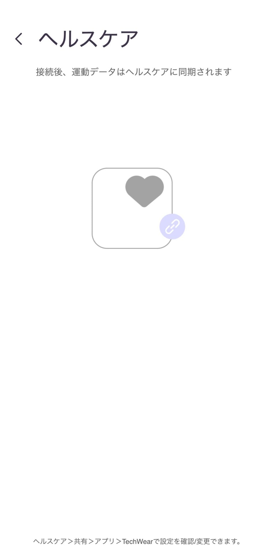 スマートウォッチ 01/02は、ドコモの健康管理サービス「dヘルスケア」と連携できることも特徴としている。どうやって連携させるのかを試してみたところ、「TechWear」アプリや、オンラインの取扱説明書には「dヘルスケア」という項目が見当たらず。