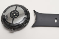 ボディは円形で、右にリューズ、リューズの上にサイドボタンを配置。底面には、心拍数や血中酸素濃度、ストレス、睡眠状態などを計測する各種センサーを搭載。41mmモデル、45mmモデルとも外観デザインは共通で、サイズ以外の違いはほぼないと言っていい。このあたりはPixel Watch 3と同じだ。