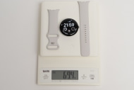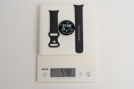 実測の重さは、41mmモデルは本体のみで31.4g、Sサイズのバンドとの組み合わせで55g、Lサイズのバンドとの組み合わせで57.8g。45mmモデルは本体のみで37.1g、Sサイズのバンドとの組み合わせで67.2g、Lサイズのバンドとの組み合わせで69.4gだった。