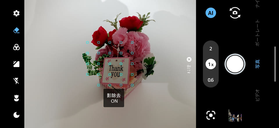 撮影機能で便利なのが影除去やショーケースモードといった、余計な映り込みを画像処理で消してくれる機能。これらは実際に撮影しようとすると、プロのカメラマンがレフ板やライティングを駆使して撮影することで除去できるテク。それを自動で行ってくれるので、撮影技術に詳しくないユーザーでも、普段使いのスナップ撮影が楽しくなる。