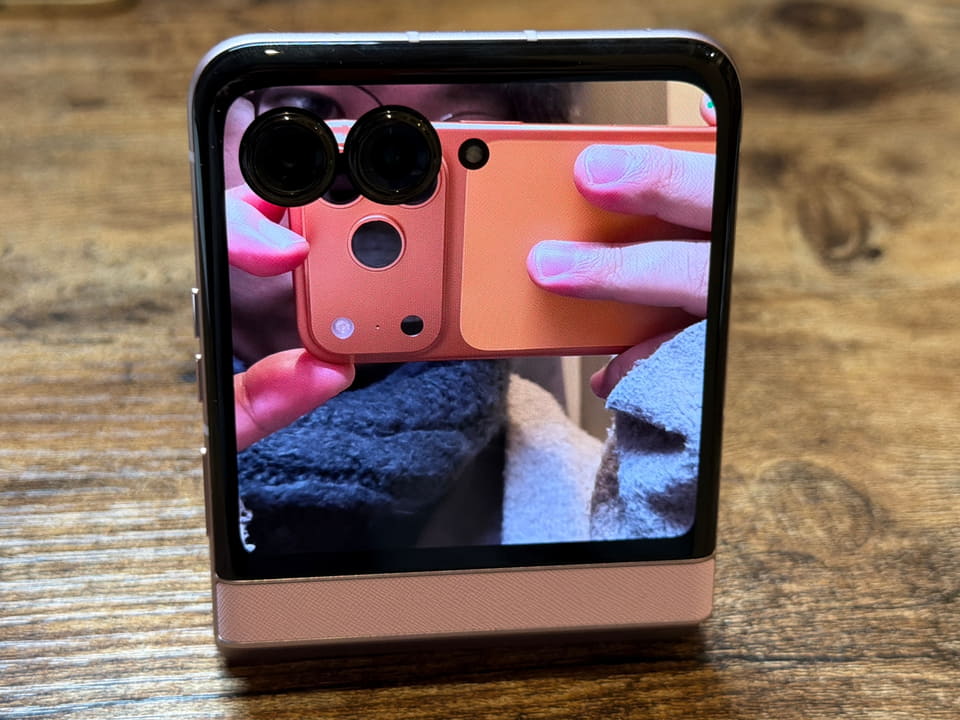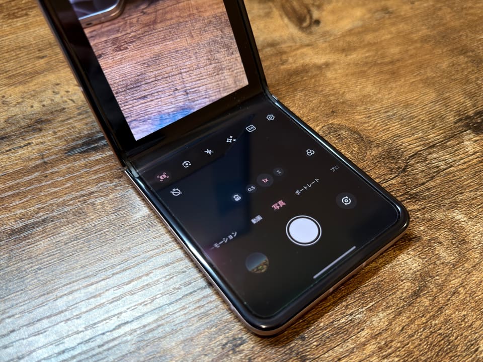 個人的な利用頻度は低めだが、半分折りの状態でカメラアプリを起動し、アウトディスプレイで写り方を確認しながら、アウトカメラでセルフィの撮影ができるのも、刺さる人には刺さるポイントだろう。