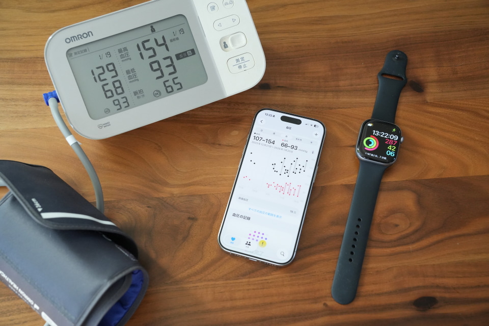 先にも述べたが、Apple Watchには血圧を測定する機能はない。されど、主要なメーカーの血圧計で測定したデータは「ヘルスケア」アプリに同期することができる。
