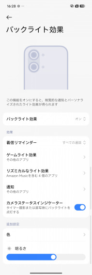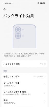 また、カメラレンズ周辺には、バックライトを内蔵。通知などに対応する。