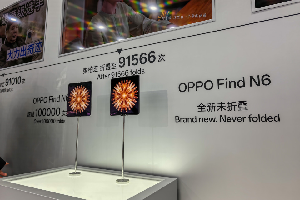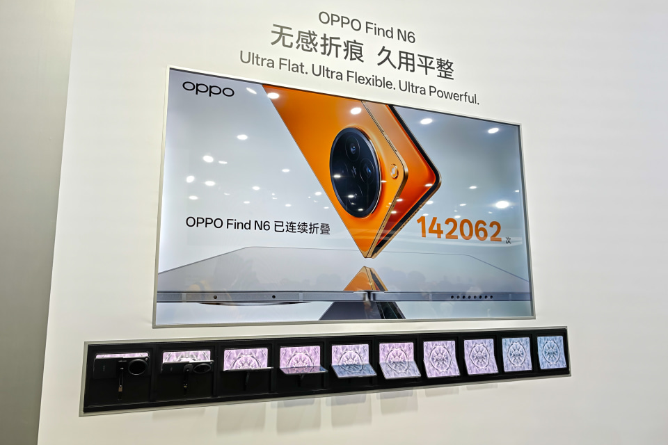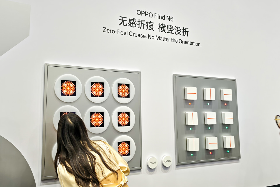 9枚のディスプレイから折り目の向きを当てる展示や、24枚のディスプレイの中から1台だけ紛れた「Find N6」を探す展示も用意されていた。