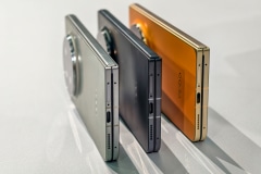 グローバル向けモデルのカラーは「ブロッサムオレンジ」と「ステラチタニウム」の2色。大きさは、折りたたみ時が159.87×74.12×8.93mm、展開時が159.87×145.58×4.21mm。重さは225g。