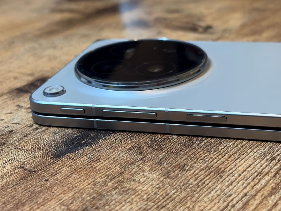 「OPPO Find N6」の質量は約225g。「Galaxy Z Fold7」比では10gほど重いが、折りたたみスマートフォンとしては軽量。「iPhone 17 Pro」が206g、「iPhone 17 Pro Max」が233gであることを踏まえても、もはや一般的なスマートフォンと遜色ない質量と言っていいだろう。もちろん、大画面モデルらしい重みではあるものの、使いにくさを感じるほどではなく、これで8インチ以上のタブレットも兼ねると考えれば、十分納得のいく重さだ。