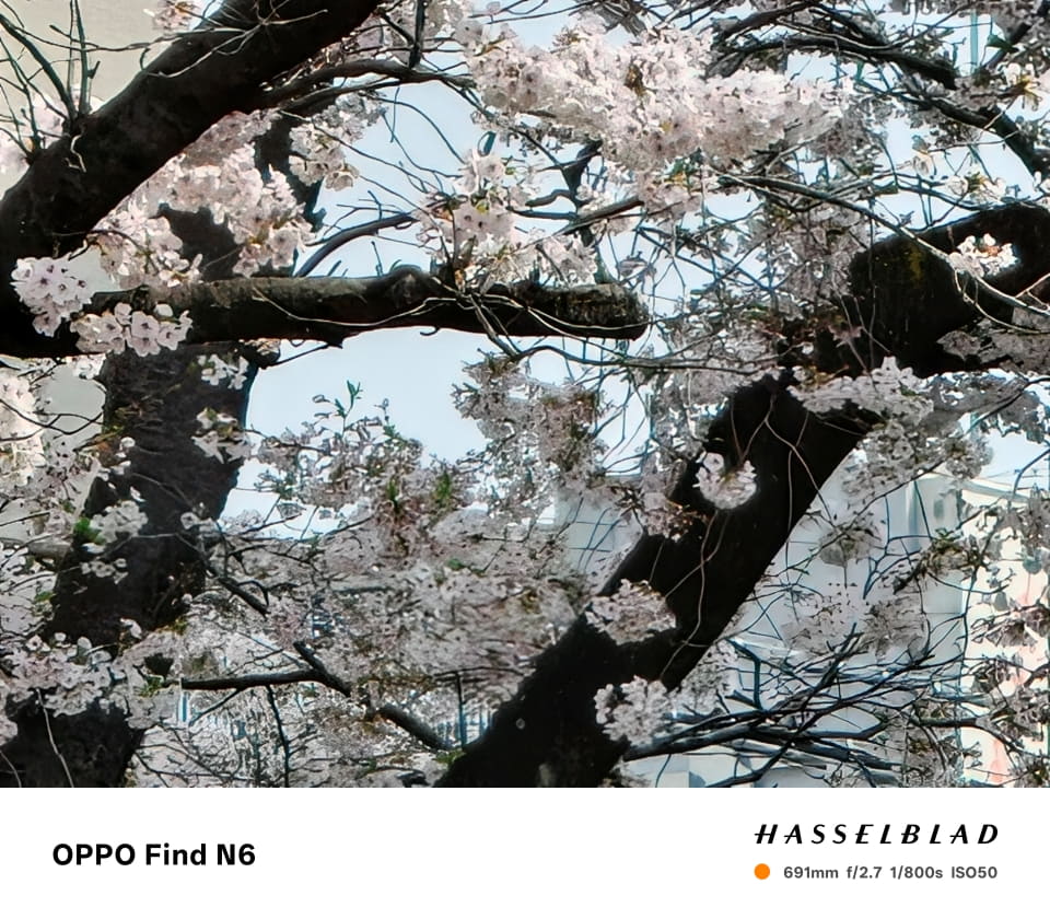 カメラブランドと協業するスマートフォンとしては、シャオミとライカのタッグが印象強いが、色表現としては、OPPO Find N6のほうが素朴な仕上がりになる。AF速度、シャッター速度も速く、超広角、望遠カメラにおいても、破綻のない美しい描画が可能だ。デジタルズームは最大120倍で、倍率を上げていくと、AIの補正が強くなっていく。