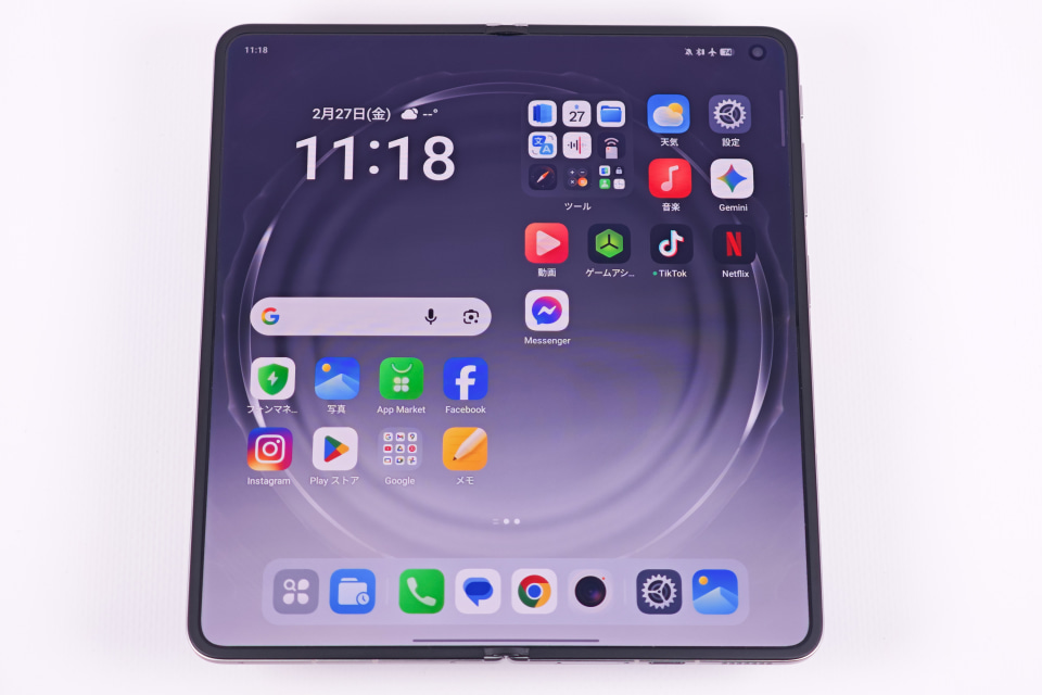 折り目部分については、独TÜV Rheinlandの「折り目最小化認証」を取得。60万回開閉しても画面の平坦さが維持できるとしている。