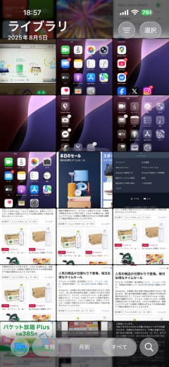 また、設定によってはサムネイルをタップしないでも「フルスクリーンプレビュー」が表示される。