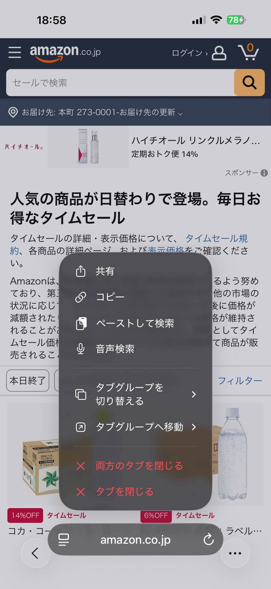 アドレスバーを長押ししたときに表示されるメニューも増えた。とくにタブを閉じる操作がここに加わっているので、ある意味ではiOS 18よりも簡単になっている。