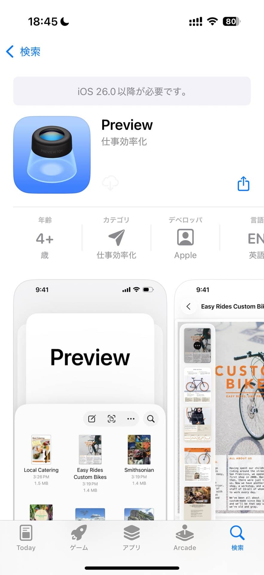 iOS 26(とiPadOS 26)では新規の標準アプリとして、「プレビュー」が追加されている。