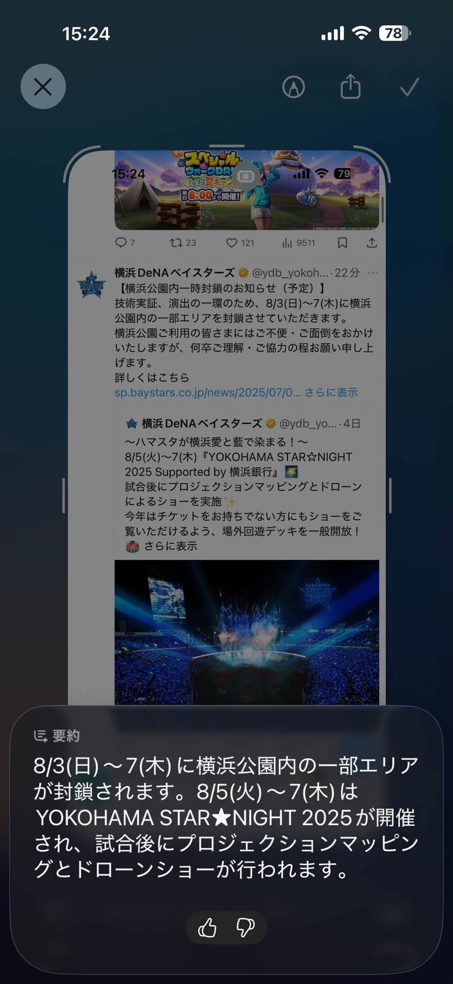 「質問」と「画像検索」のあいだには、スクショした画面の内容に応じて「要約」や「読み上げ」、URLへのリンクが表示される。