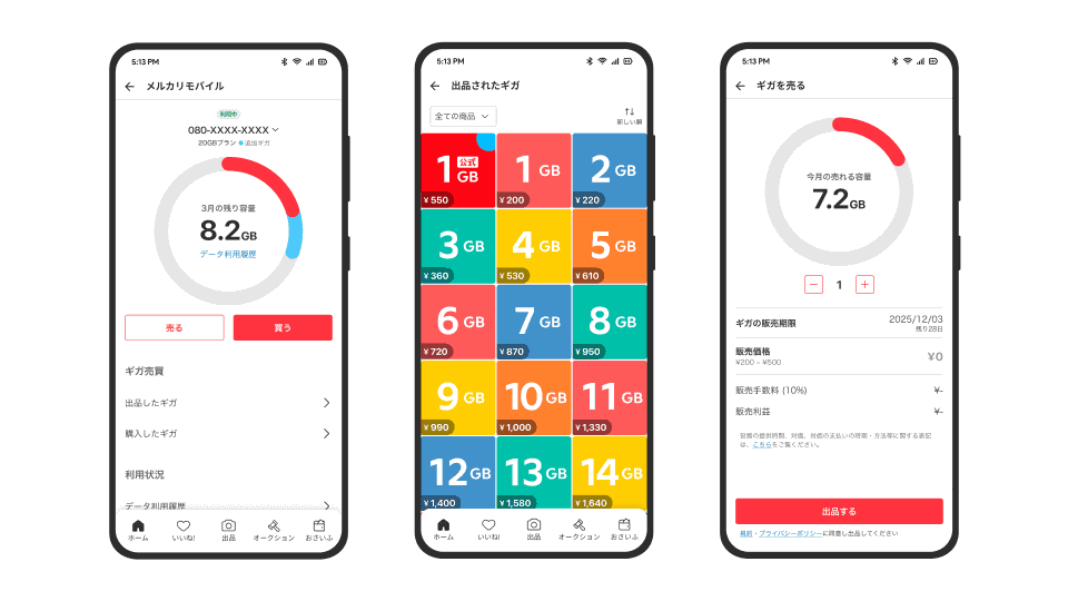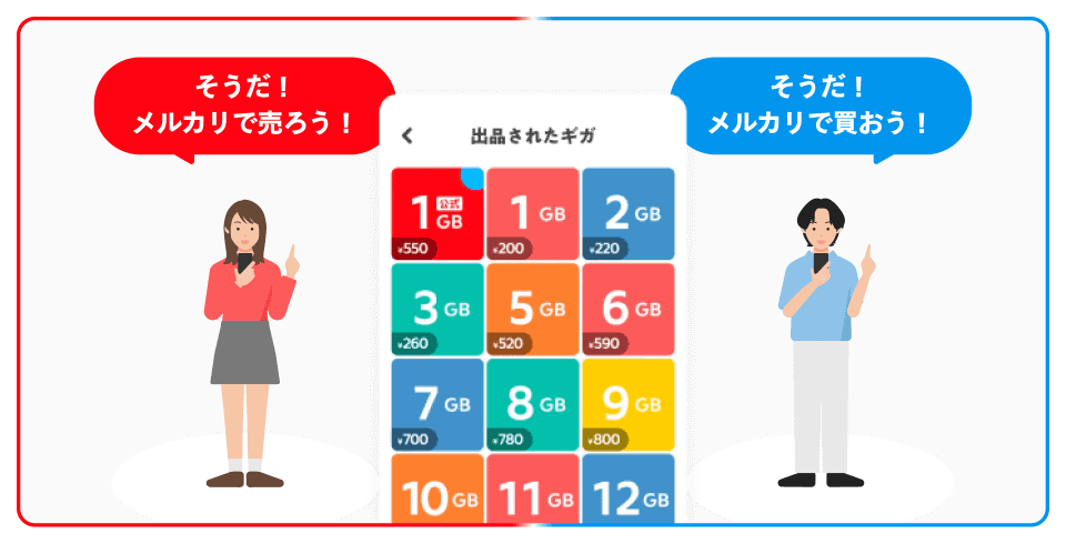 データ容量は余っても出品して売れればムダにならず、逆に足りないときは1GBあたり平均80円(集計期間:2025年11月)の価格相場で必要な分だけ購入できるため、お客さま一人ひとりの利用スタイルに合わせて柔軟に運用できます。