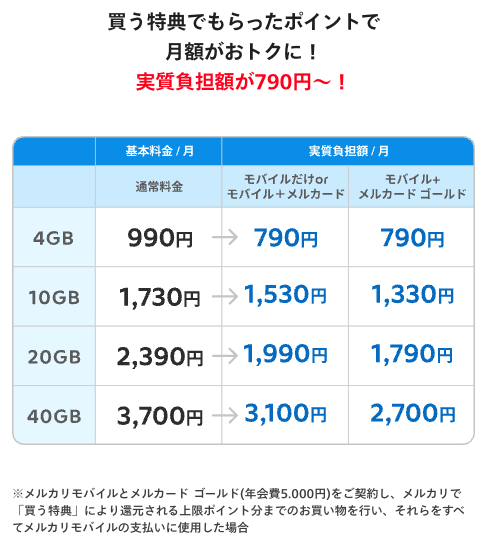 - メルカード ゴールドの「買う特典」還元ポイントを利用すると実質月額790円に!!