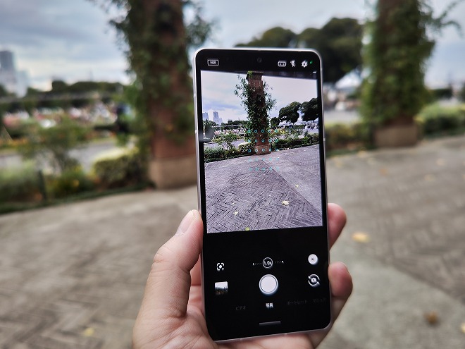 そのほかシャープ製スマートフォンでは定番の機能を装備。たとえば動画撮影では、撮影中にAIが自動でシーンを判定して写真も撮影してくれる「AIライブシャッター」など。動画撮影時は写真撮影用のシャッターボタンも表示され、任意のシーンを写真として保存できるが、それを自動でしてくれるのはありがたい。