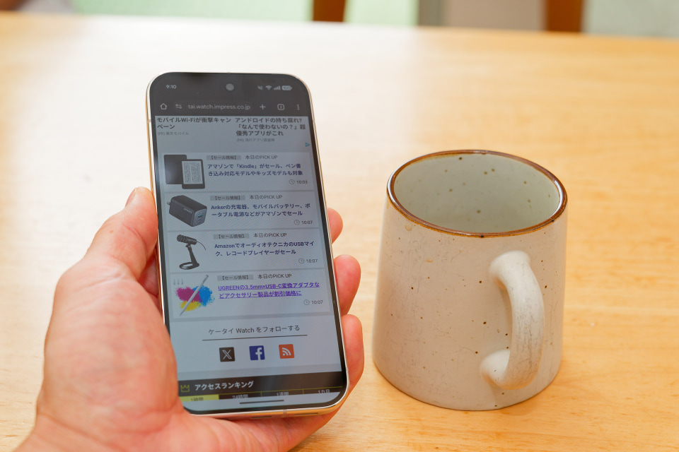 ちなみに充電はケーブル接続のほか、ワイヤレス充電の「Google Pixelsnap」にも対応する。「Google Pixelsnap」は、別途マグネット式のワイヤレス充電器と組み合わせることで、正確なポジションに素早く固定して充電できる仕組み。充電台に固定せずに置くタイプとは違って、充電中でもスマホを手に持って使いやすいので、1日中スマホ利用が妨げられるようなことはないのだ。