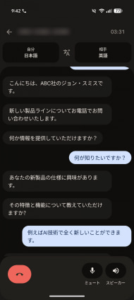あともう1つ、新たに使えるようになったユニークな機能が「マイボイス通訳」だ。これは電話アプリで利用できるもので、外国語を話す相手の声をAIが翻訳して音声再生しつつ文字起こしを行い、それに対して自分の側から日本語で返答すると、その音声も外国語にリアルタイム翻訳されて相手に伝わる。しかも同時に翻訳音声を自分の声質に変えてくれるのだ。相手が Google Pixel でなくても、固定電話を含めて利用できるのも特徴となっている。