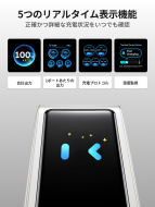 本体にはディスプレイを搭載し、バッテリー残量をパーセント表示で正確に確認できる。また、充電中のリアルタイムな合計出力を数値で表示する機能も備えている。