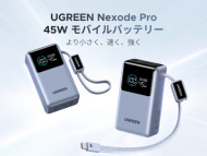 UGREEN 当社比極小型(10000mAh・PD45W) 充電ケーブル一体型 モバイルバッテリー