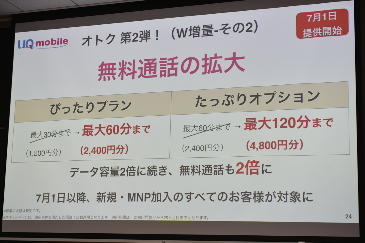 • データ量が2倍になるUQ mobileのキャンペーン、新規契約も対象に