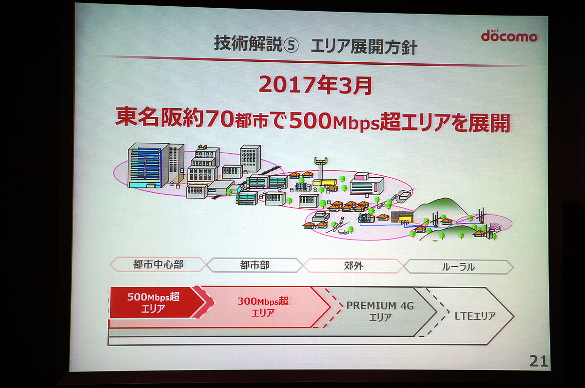 ドコモ、2017年3月に500Mbps超を70都市で(10/14)