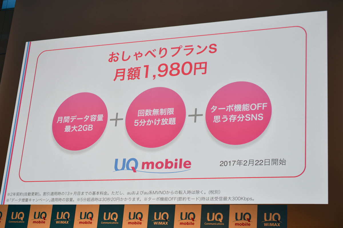 UQ mobileが5分かけ放題の「おしゃべりプラン」、2017年2月開始
