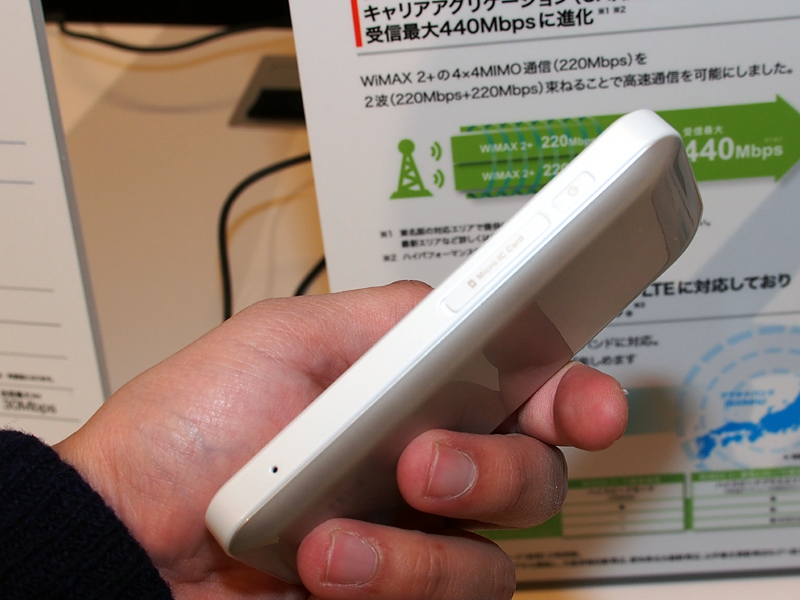 • 下り440Mbps、WiMAX 2+のモバイルWi-Fiルーター「WX03」
