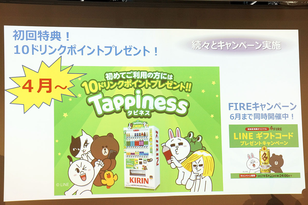LINEとキリンがポイント自販機「Tappiness」いよいよ開始、友達・家族へプレゼントも
