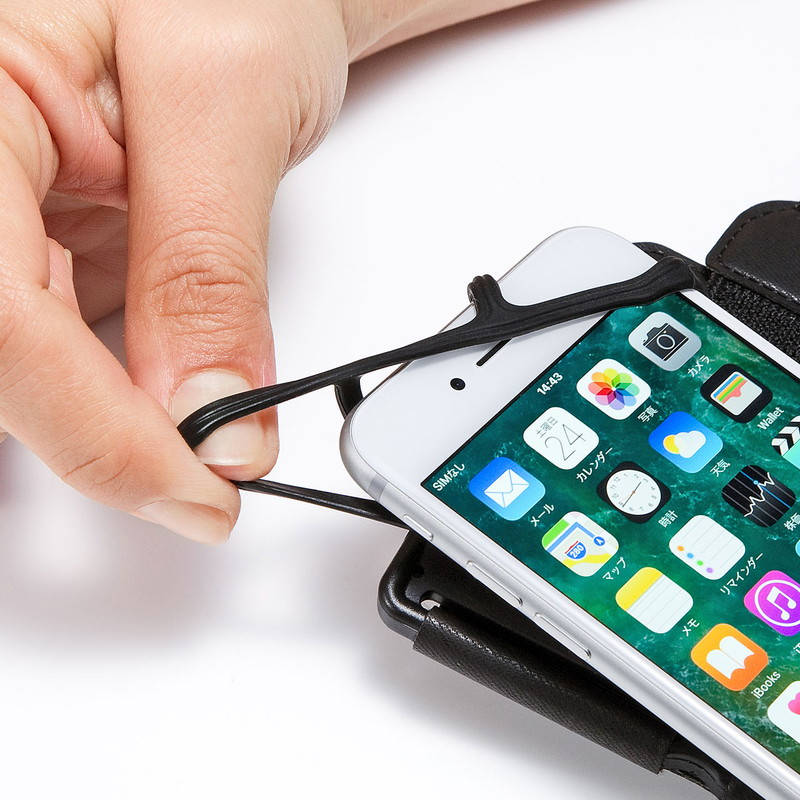 手首にスマホを固定、さっと取り出して使えるリストバンド