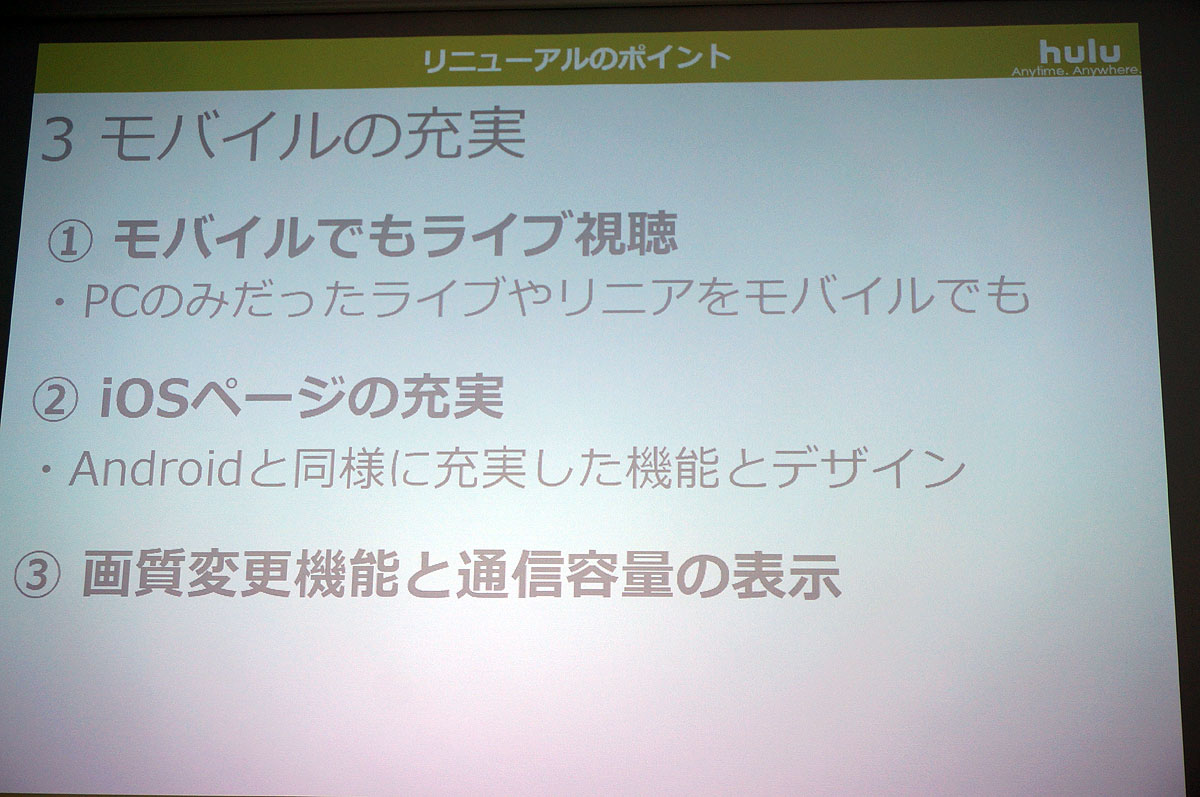 Hulu、スマホでも音楽ライブやスポーツ中継を楽しめるように(11/12)