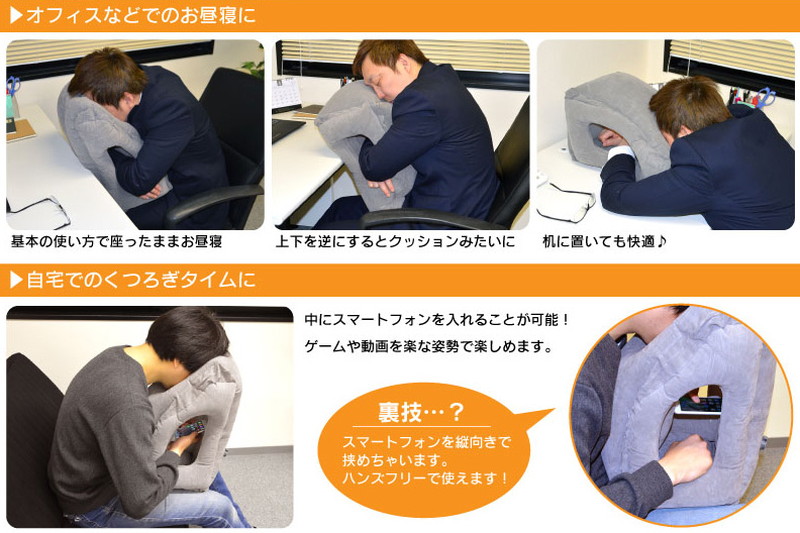 デスクでお昼寝、スマホ操作も快適なうつぶせ寝エアピロー(2/6)