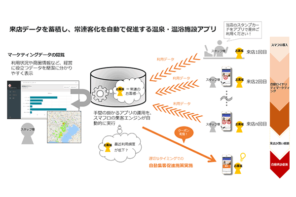 ニフティ、温浴施設向けのスタンプカードアプリ「スマフロ」