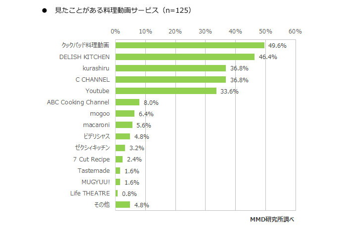 料理の動画は「クックパッド」「DELISH KITCHEN」が人気、MMD調査