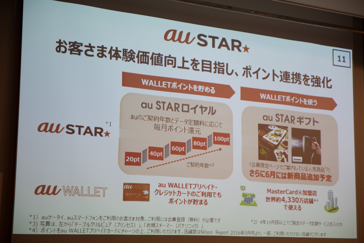 KDDI、2017年度は「au STAR」などユーザー還元策を拡大(12/27)
