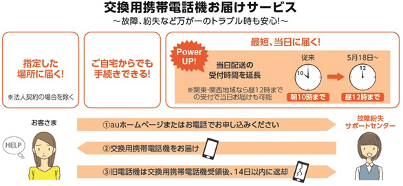 au、「交換用携帯電話機お届けサービス」でコンビニ・ヤマト営業所受取が可能に