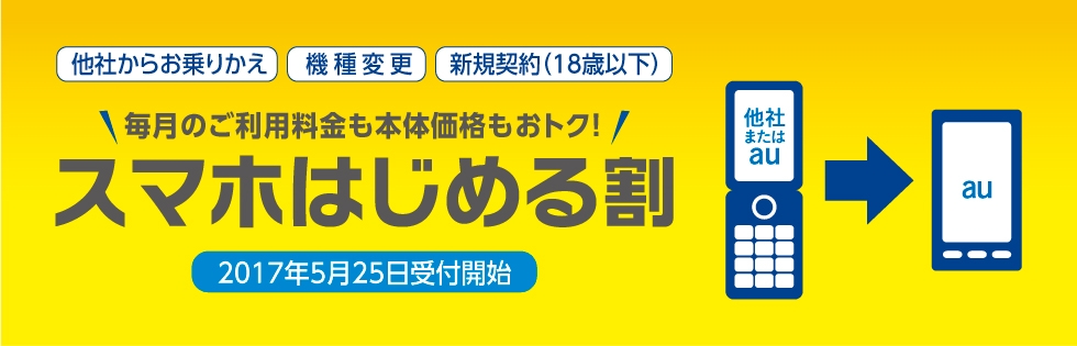 月2980円の「auスマホはじめるプログラム」、他社ケータイからのMNP・18歳以下の新規も対象に