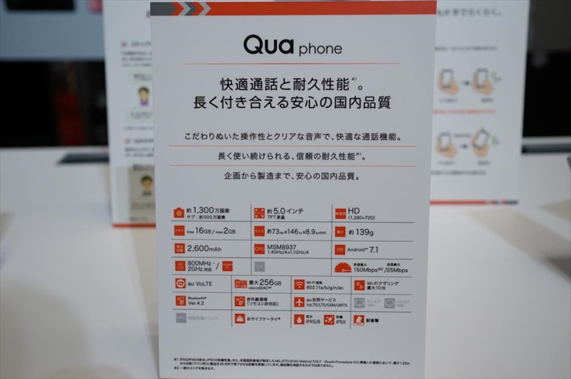 「Qua phone QZ」、カラフルボディにタフネス性能【更新】