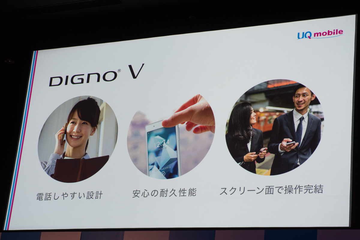 • UQ mobile、フロント電源ボタンにタフネス性能の「DIGNO V」【写真追加】