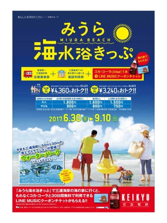 京急で海水浴に行くとLINE MUSICの30日利用券、「みうら海水浴きっぷ」