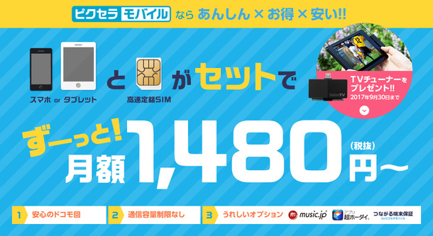 3日3GBの「ピクセラモバイル」登場、LTEドングル購入で月額1480円
