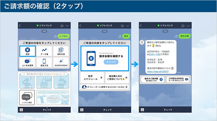 「LINE」でソフトバンクの料金や通信量が確認できるように