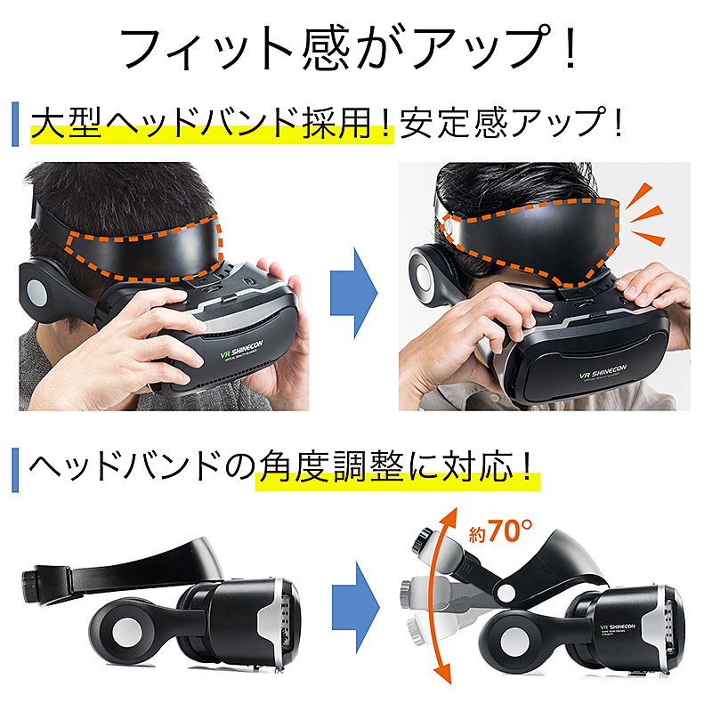 ヘッドフォン一体型のスマホVRゴーグル、サンワサプライから