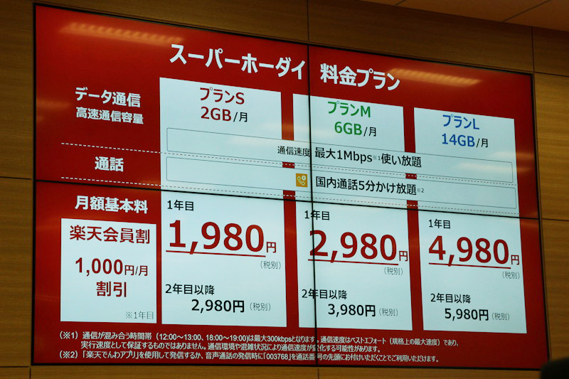 楽天モバイル、低速時でも1Mbpsで5分かけ放題付き「スーパーホーダイ」初年度は月額1980円から(3/4)