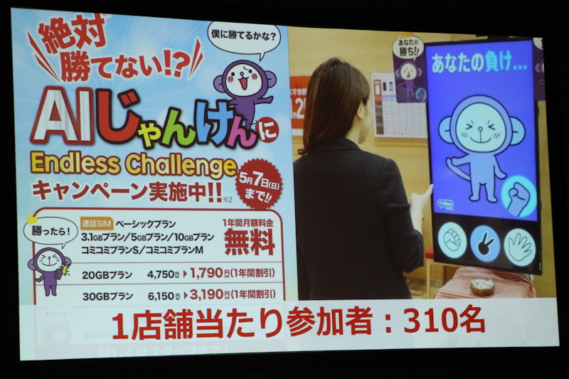 • 勝率99.9%の「AIじゃんけんマシーン」に勝てたら1年無料、楽天モバイルのキャンペーン